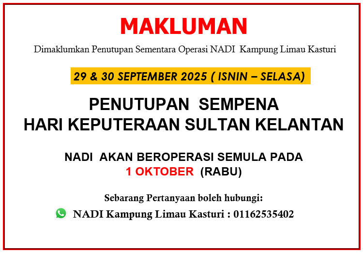Penutupan Sementara NADI Sempena Hari Keputeraan Sultan Kelantan